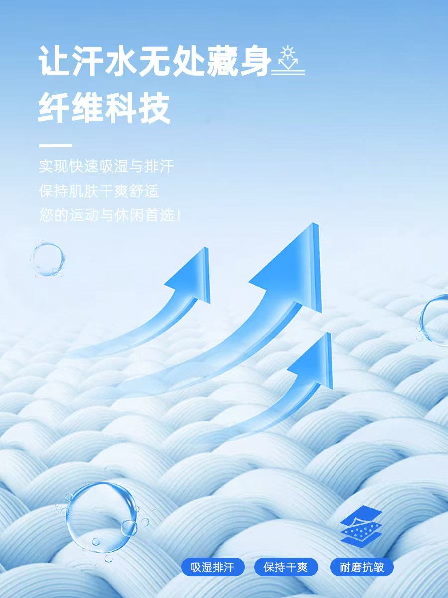 聚酯纖維有著出色的速干性能,能快速吸收并蒸發(fā)汗液,保持身體干爽。同時(shí),它具備良好的耐磨性和抗皺性,經(jīng)久耐穿,日常穿著和洗滌也不易變形起皺,打理起來(lái)更方便。