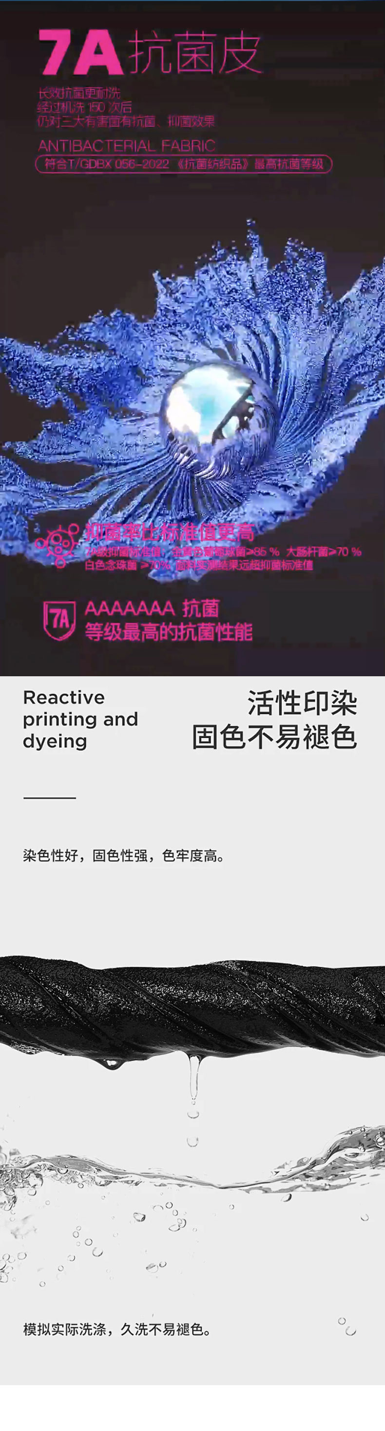 干爽黑科技面料7A抗菌、極速秒干防螨蟲
