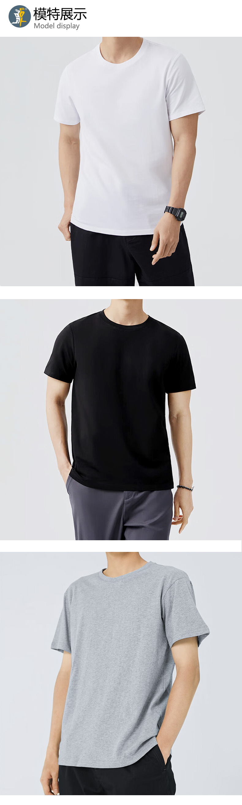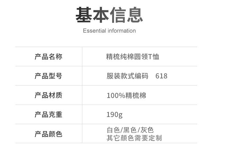 185g 經(jīng)典黑白灰T,柔軟舒適,親膚透氣